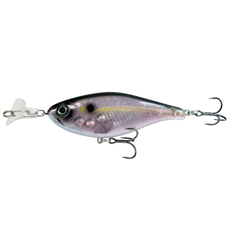 Nástraha je vybavená hrkajúcimi guličkami (hrkálkou), realisticky spracovanými 3D očami a vnútornou holografickou fóliou. Transparentná povrchová úprava pridáva hĺbku a prirodzený vzhľad koristi.